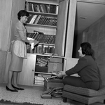 The annual Book Fair sponsored by the Fort Worth Section of the National Council of Jewish Women (NCJW) will open on April 18 in the mall at Seminary South. Mrs. Edwin S. Wittenberg dusts discarded books from her own library, to be donated to the Book Fair as Mrs. Marc Lopin boxes them to be delivered to Seminary South.