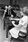 An occupational therapist plays a game of checkers with a visually impaired patient at the Rehabilitation Center of the Fort Worth Society for Crippled Children and Adults, 4700 South Riverside Drive, 03/07/1964