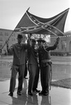Old South week at Arlington State College (A. S. C.); holding a Rebel flag, from left, Tommy D'Andriole (Fort Worth), Don Peacock (Dallas), and Eddie Castellanos (Arlington), 03/18/1964