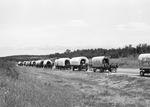 Image shows The Rolling Plains Mule Team Association, 20 Wagons, on a trail heading for Jack County town and Fort Richardson Frontier Fair. Published in Fort Worth Star-Telegram morning edition May 29 1964.