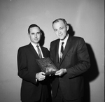 Paul R. Cunningham, left, was named "outstanding young engineer" by the Fort Worth chapter of the Texas Society of Professional Engineers. W. H. Nedderman, president of the Fort Worth Chapter, right, presented the award. Published in Fort Worth Star-Telegram morning edition November 13, 1964.