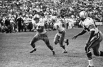 Dallas Cowboys vs. Philadephia Eagles football: Cowboys quarterback Don Meredith (#17) follows guard Joe Bob Isbell (#60) for a touchdown.