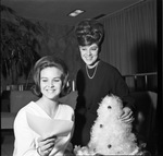 Maid of Cotton finalists Judy Hill (left) and Sherry Lynn Boucher with cotton Christmas tree; Judy holds telegram that notified of their honor.