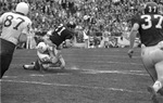 Cotton Bowl, University of Arkansas vs. University of Nebraska: University of Arkansas wingback Jim Lindsay halted by University of Nebraska's halfback William Johnson (28) and Larry Wachholtz; play set up winning touchdown.