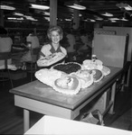 Worker at Pangburn Candy Company, Fort Worth, displays variety of Valentine's Day chocolate boxes, 02/09/1965