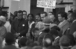 Minister with bowed head leading group in prayer during Civil Rights demonstrations in Fort Worth, protesting brutality in Selma, Alabama, 03/14/1965