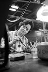 Photo feature on women who work at General Dynamics. Mrs. Floyd Campbell solders wires to switches with a tiny iron. She is one of the many women workers at General Dynamics doing exacting chores. Since World War II women have held factory jobs once considered a man's work. More than 1,700 of the organization's 13,600 employees are women.