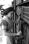 Miss Alita Rose, president of one of the two classes of student nurses at John Peter Smith Hospital School of Nursing, locates a book in the library and prepares to spend a couple of hours in quiet study.
