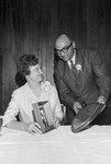 Image shows Ruth E. Franz, placement staffing specialist at Carswell Air Force Base, and Harold A. Odom, right, intergroup relations officer in the regional office of Public Housing Administration, compare awards they received as Career Girl of the Year and as Civil Servant of the Year. Awards were made by the Federal Business Association at Ridglea Country Club. Published in Fort Worth Star-Telegram evening edition June 4, 1965.