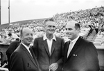From left, Texas League President Hugh Finnerty, Houston General Manager Paul Richards, and Spurs co-owner Tommy Mercer; Texas League All Stars vs. Houston Astros game at Turnpike Stadium, Arlington, 07/15/1965