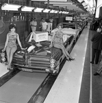 A shining 1965 Pontiac convertible topped by two female "tigers" roared down the General Motors assembly line to become the millionth automobile produced at the Arlington plant, which opened in 1954. The "tigers" are models Betty Cremer and Shirley Deis.