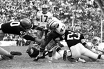 Dallas Cowboys vs. Cleveland Browns football; Cowboys quarterback Don Meredith (#17) and fullback Don Perkins (#43) carries the ball, 11/21/1965