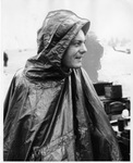 Bob Schieffer wearing rain poncho, Fort Worth Star-Telegram reporter covering war in Vietnam.