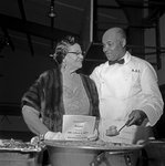 Mrs. Lucille Bishop Smith, honored for 50 years' service to humanity, checks a menu which was prepared by one of her sons, A. B. Smith. About 300 people attended the program honoring Mrs. Smith.