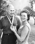 Amon Carter Jr. with wife; he was given Silver Beaver award by Boy Scots Longhorn Council at Leonard Scout Reservation, 06/28/1966