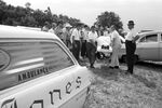 Burleson Fire Chief Charles (Red) Newby removed bodies of Robert Brand, 17, and Marcus Dunnam, 16, from trunk of their car. The car was found early in the morning on August 7, 1966 in a field off Farm Road 1017, about a mile west of U.S. Highway 81 South,