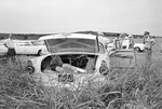 Bodies of Robert Hugh Brand, 17, and Marcus Dunnam, 16, were discovered in the trunk of their car on August 7, 1966. Officials are seen here inspecting the car. Roy Green, 18, and Kenneth Allen McDuff, 20, have been charged with murder in the case.