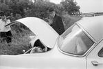 Bodies of Robert Hugh Brand, 17, and Marcus Dunnam, 16, were discovered in the trunk of their car on August 7, 1966. Officials are seen here inspecting the car. Roy Green, 18, and Kenneth Allen McDuff, 20, have been charged with murder in the case.