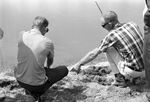 Search parties gather near a body of water and watch as divers see if a stock tank near Burleson contained the body of Edna Louise Sullivan, 16-year-old Everman girl. She was with two others, Robert Hugh Brand, 17, and Marcus Dunnam, 16, whose bodies were found in a car near Burleson, Texas. Roy Green and Kenneth Allen McDuff were later charged with murder in the case.