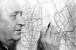 Tarrant County Sheriff Lon Evans traces on a map the route reportedly followed by two youths who allegedly killed two boys (Robert Hugh Brand, 17, and Marcus Dunnam, 16) on August 7, 1966, then raped and strangled a 16-year-old girl, Edna Louise Sullivan. Roy Green made the drawing, one of the two admitted slayers, which led to the discovery of the girl's body. Roy Green and Kenneth Allen McDuff were later charged with murder in the case.