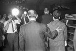 Arlington Mayor Tom J. Vandergriff escorting his wife, Anna, through the ceremony crowd of the appreciation dinner held in his honor in Hotel Texas' Grand Ballroom.
