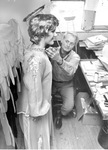 Margaret Carter in angel costume assisted by Dickson Reeder for "The Littlest Wiseman" production at the Reeder School.