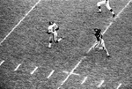 Southern Methodist University (SMU) football player Jerry LeVias (#23) runs down the field with the ball on a pass play that covered 68 yards and gave SMU their opening touchdown against Texas Christian University (TCU). TCU's John Richards (14) is seen running after LeVias.