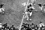 Southern Methodist University football player Jerry LeVias (#23) runs down the field with the ball along the Texas Christian University sideline.