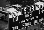 The scoreboard at the Texas Christian University's (TCU) Amon G. Carter Stadium during a TCU football game against Southern Methodist University.