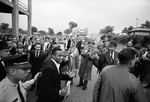 Jerry LeVias (#23), first African American football player for Southern Methodist University (SMU), leaves the stadium at Texas Christian University's (TCU) Amon G. Carter Stadium escorted by patrolman G. R. Killough and plainclothes officer L. W. Spinks.