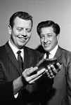 C. Jack Bean, retiring chairman of the Tarrant County Community Action Program committee, left, receives plaque of appreciation from the program's newly elected chairman, Manuel Jara. Published in Fort Worth Star-Telegram morning edition December 9, 1966.