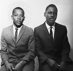 Image of Junior High All City Football players. Sitting, left to right is Leonard Harris and Beynard Duke. Published in Fort Worth Star-Telegram evening edition December 20, 1966.