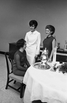 Miss Marianne McCauley, left, and Mrs. Zoe Hess pause to chat with Miss Maria Terricome (seated), first series of information sessions, part of the intricate process of "going Greek" which is scheduled to be complete this spring for Arlington State clubs. Published in Fort Worth Star-Telegram evening edition February 13, 1967.