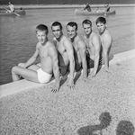 Five members of The University of Texas at Arlington swimming team earned College Division All-America honors this year. They are, from left to right, Brian Robbins, Rick Nesbit, Ernie Siefert, Doug Russell, and Ed Bagot. The UTA Rebels finished fifth in the national meet.