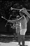 Alexa Langford, 16, center, from Arlington High School seems to be out of step, but she's really doing exactly what she is supposed to do. Twirlers can march in-step, where they all twirl the same direction or out-of-step, where every other girl twirls in the same direction. The two steps are just a few of the many twirling tricks the girls learned during the week. Published in Fort Worth Star-Telegram evening edition July 28, 1967.