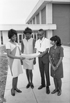 Making plans for the new Dunbar High School are, left to right, student council sponsor Mrs. Odessa Johnson; National Honor Society president Ora Washington; band president Harlee Glover; and student council president Mary Holland. The students are planning expanded activities in keeping with their new school. Published in the Evening Edition of the Fort Worth Star-Telegram on September 15, 1967.