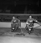 Fort Worth Wings ice hockey; veteran defensemen Lou Marcon (left) and Irv Spencer, 10/11/1967