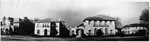 Panorama of 4 separate photographs showing the historical residences that make up the Woman's Club of Fort Worth; from left, Margaret Meacham Hall, Ida Saunders Hall, William G. Newby Memorial Building and Florence Shuman Hall.