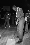 Robert Knox, 11, won the putting competition at the 1968 Cub Scout Olympics. Robert is seen in putting position, holding a golf club next to a golf ball placed on the floor. The event was held by the Woodbine Trail District Longhorn Council of the Boy Scouts which took place in Harmon Recreation Center in Fort Worth and was attended by about 100 Cub and Boy Scouts.