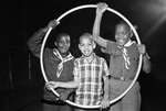 A group of Cub Scouts from Cub Scout Pack 231, represented by Kirkpatrick Elementary school students Dale Brown, 10, Anthony Earle, 9, and Marcus Jones, 9, who won the hula hoop race at the 1968 Cub Scout Olympics. The event was held by the Woodbine Trail District Longhorn Council of the Boy Scouts which took place in Harmon Recreation Center in Fort Worth and was attended by about 100 Cub and Boy Scouts.
