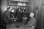 Image shows Harold A. Odom, center, equal opportunity specialist, speaker at the Dunbar High School dedication. Left, Dunbar Principle J. Martin Jacquet and Fort Worth School Superintendent Julius Truelson. The school is located at 5700 Ramey Ave. Published in Fort Worth Star-Telegram morning edition May 20, 1968.