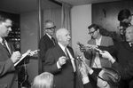 Warren Giles, National League president, speaks with reporters following the League's announcement they have granted franchises to San Diego and Montreal, 0528/1968