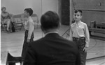 Mike Altman auditioning for Texas Boys Choir before director and in front of mirror
