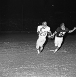 Jerry LeVias (#23), Southern Methodist University (SMU) football player, is chased by Texas Christian University (TCU) football player Billy Lloyd (#25), after receiving a pass from SMU teammate Chuck Hixson. SMU won the game 21-14.