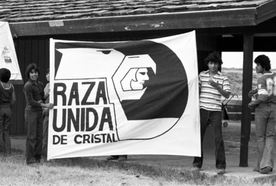 • La Raza Unida banner, Crystal City, Texas