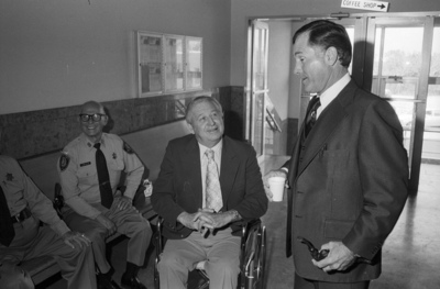 • Cullen Davis talks with his supporters in the courtroom by Ron Heflin