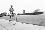 Gordon Kelley pedals his turn-of-the-century bicycle through the "Celebration '76" Bicentennial festivities near the Will Rogers Memorial Center grounds in Fort Worth.