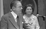 Jenkins Garrett speaking at dedication of his collections to University of Texas at Arlington (U. T. A.), March 4, 1974