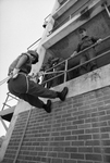 Miss Diane Oritz of The University of Texas at Arlington ROTC unit scales a fire training tower as part of her Army indoctrination. Giving instructions is ROTC Captain Homer Baxley. Published in Fort Worth Star-Telegram morning edition October 4, 1974.