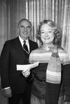 Frank Sherwood, chairman of Fort Worth Children's Hospital board, receives check from Mrs. W. A. Moncrief, President of the Jewel Charity Ball, 04/07/1975